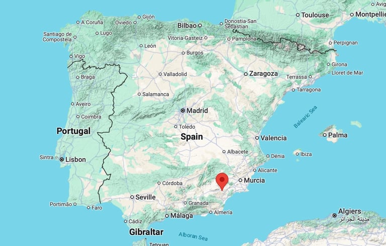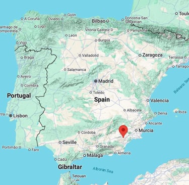 De 28 hectare grote amandelboerderij Las Colinas Ondulantes (De Rollende Heuvels) ligt in Murcia nabij Zarzalico, aan de doorgaande weg tussen Velez Rubio en Puerto Lumbreras. Anderhalf uur rijden van de Tabernas-woestijn, bekend als het "Hollywood van Europa", een beroemde filmlocatie waar klassiekers als A Fistful of Dollars, The Good, the Bad and the Ugly, Lawrence of Arabia en Indiana Jones and the Last Crusade zijn opgenomen. En twee en een half uur rijden van de Sierra Nevada waart o.a. geskied kan worden en drie kwartier rijden van de kust.